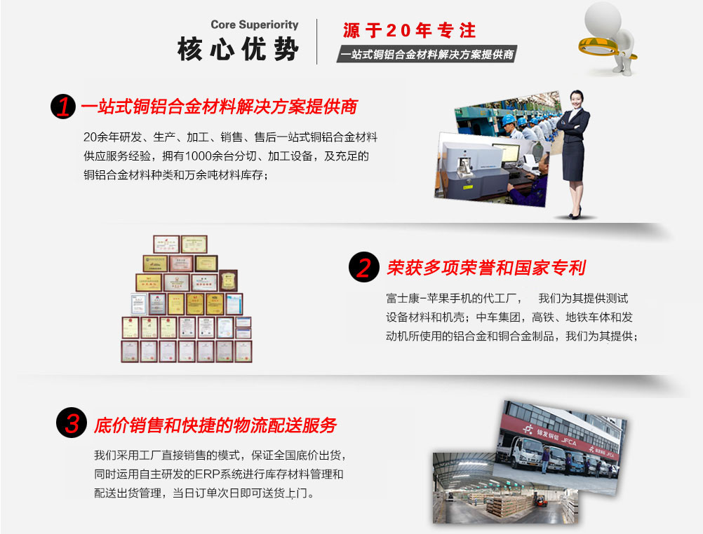 深圳市錦發(fā)銅鋁有限公司成立于1998年,注冊資金1億元人民幣,是一家國家高新技術(shù)企業(yè),榮獲廣東省著名商標(biāo)稱號??偛考吧a(chǎn)基地位于深圳寶安松崗,占地面積3萬多平方。公司成立以來,一直專注于鋁材、銅材等合金材料的研發(fā)、生產(chǎn)加工及銷售。倉儲上萬噸銅鋁合金材料,迅速響應(yīng)客戶需求。